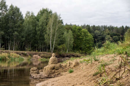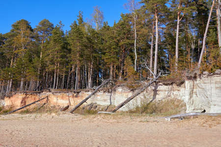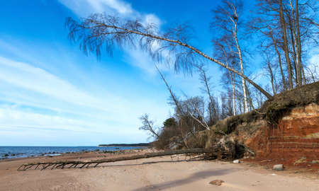 Sea, shore and sand, red clay bank, Vidzeme sea shore, Latvia, the Baltic Sea