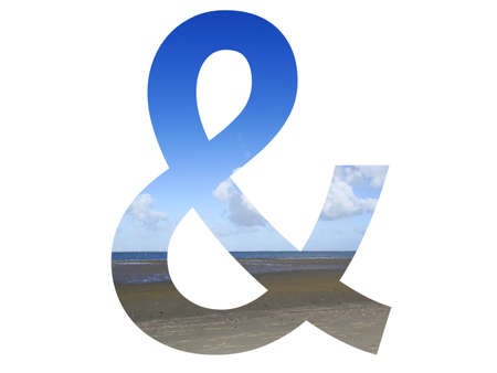 And sign of the alphabet made with beach, sea and blue sky, north sea, Netherlands, isolated on white background