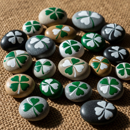 St. Patrick's Day theme with green clover leaves on stones