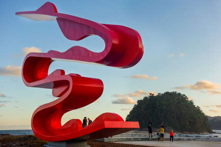 Santos, Brazil: Sculpture by Tomie Ohtake at Marine Outfall, or Emissario Submarino, Monument in honor of 100 years of Japanese immigration in Brazil