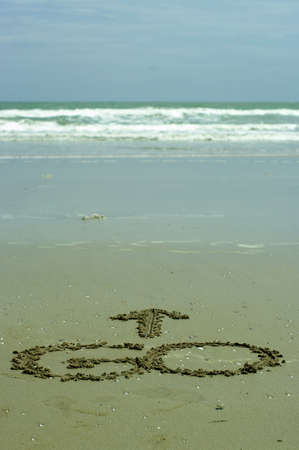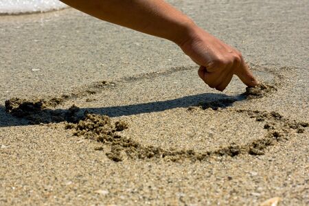 Drawing a heart in wet sand