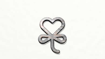 LOVE HEART BALLOON from a perspective on the wall. A thick sculpture made of metallic materials of 3D rendering. illustration and background