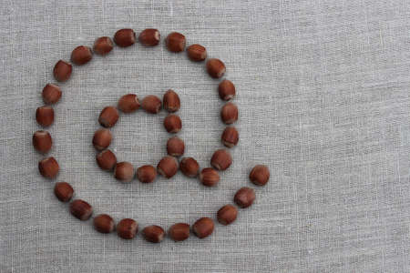 Sign @ lined with hazelnut on the background of flax
