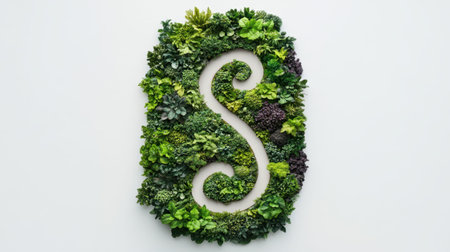 A captivating letter S crafted from a variety of fresh green leaves, creating a stunning natural display perfect for eco-friendly themes and design projects.