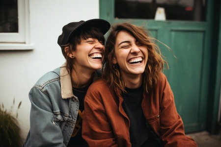 A vibrant capture of joyful moments among friends, showcasing pure laughter and connection in a lively outdoor setting, radiating happiness and energy.