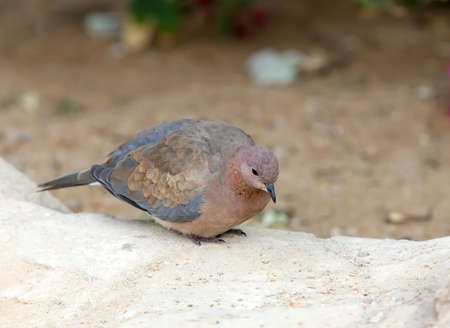 The laughing dove (Spilopelia senegalensis) sits on the ground close up photo