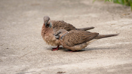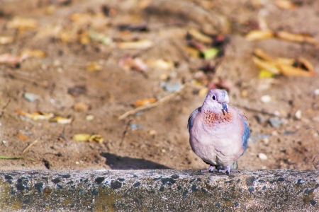 Spotted dove standing for sunbathe on the footpath