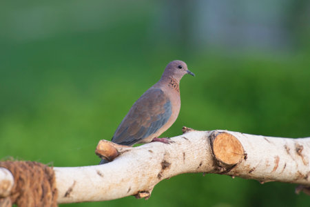 Laughing dove Spilopelia senegalensis perched on wooden pole along fence