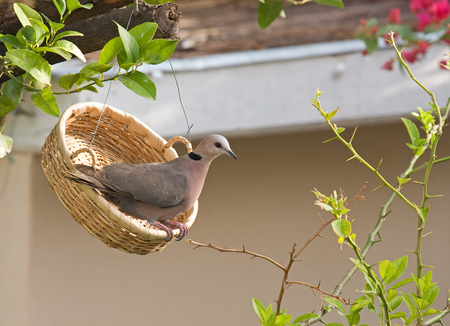 Laughing Dove (Streptopelia senegalensis ) flying with the building material to the nest
