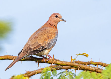 Laughing Dove - Spilopelia senegalensis, beautiful colored turtle-dove from African gardens, wodlands and forests, lake Langano, Ethiopia.