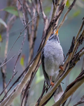 Beautiful detail and baby bird (Turdus Linnaeus) Animal in nature - colorful background.