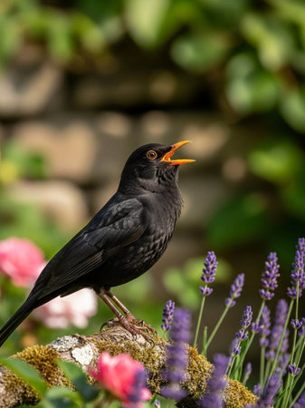 Close-up of a blackbird (Turdus merula) , Nature and wild bird image