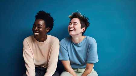 A diverse group of female women friends all laughing and having fun together. Generative ai