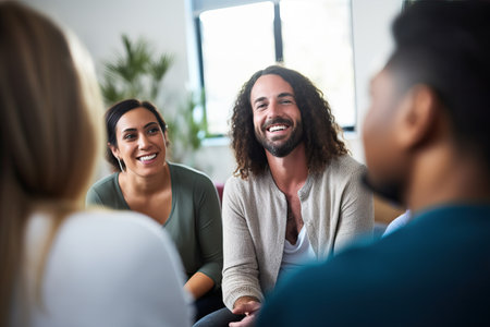 Professional therapists conduct an open group session and a comforting smile, emphasizing the importance of mental health and counseling. Generative ai