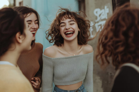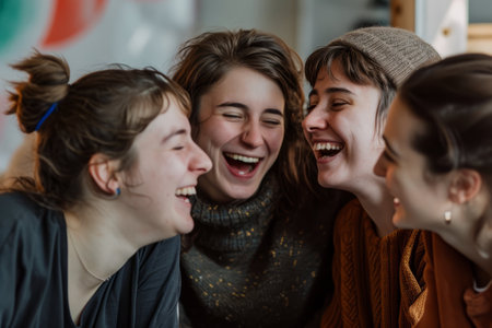 Group of female friends sharing a moment of joy and laughter, expressing carefree happiness and genuine connection