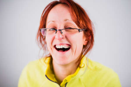portrait of happy woman laughing stock photo