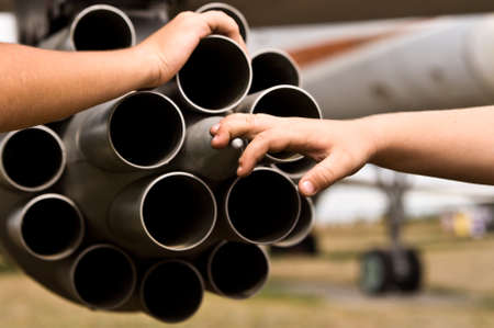 Jet tubes blowing. Look through the tubes of Grad system multiple rocket launcher.