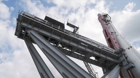 Detail of space rocket engine. Part of the rocket, close-up. Science and technology