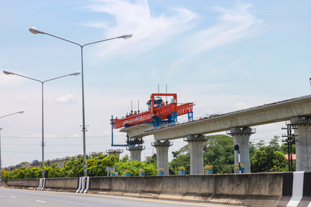 Bangkok, Thailand - September 5, 2017 : Construction site of sky train red line from Bangsue to Rangsit is a big infrastructure for transportation in Bangkok Thailand.