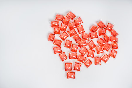 Laundry capsules close-up and copy space. Washing powder, gel for washing.