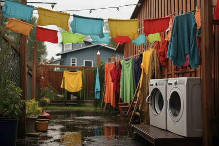raindrops on freshly hung laundry outdoors, created with generative ai