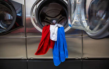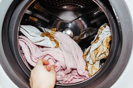 laundry. wash clothes in the washing machine.getting clothes out of the wash.