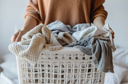 a basket of freshly washed and dried clothes, ready to be put away, created with generative ai