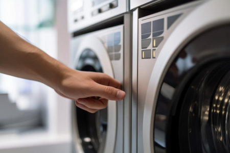 Female selecting optimal laundry wash with focus on efficiency for energy conservation