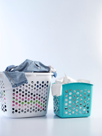 A studio photo of a laundry washing basket