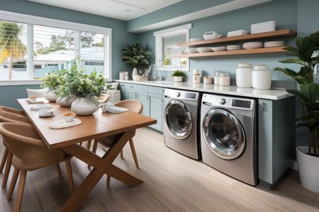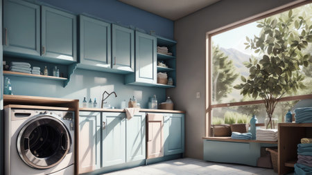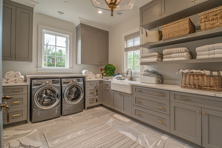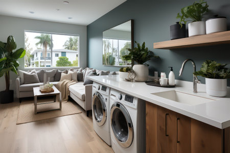 The Laundry room of a beautiful bright modern style house. AI Generated.