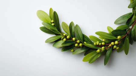 Green laurel wreath on white background with copy space for text