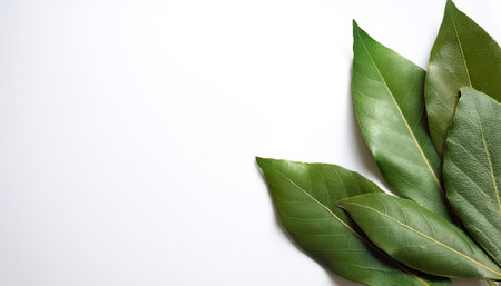 Bay leaf pattern on side position provides copy space for text. background concept isolated white