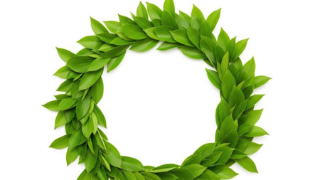 different laurel leaves arranged as a wreath