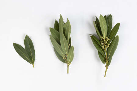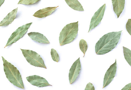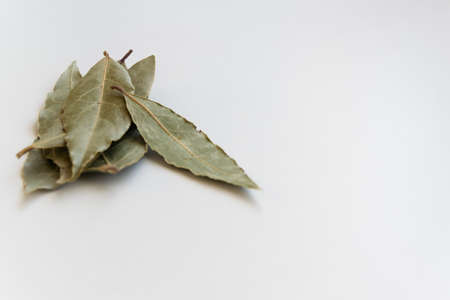Bay leaves on a white background. Culinary herbs for cooking.