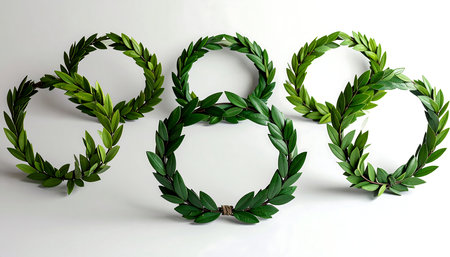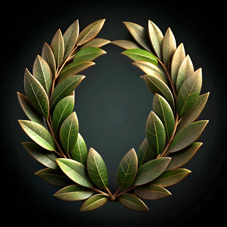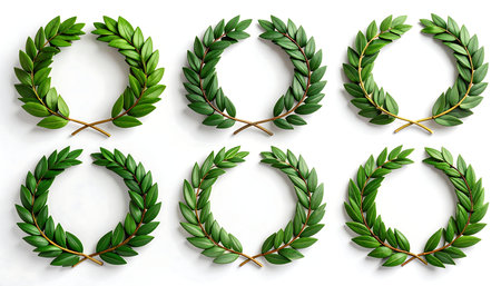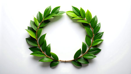 A 3D rendering of a classic laurel wreath. symbolizing victory. achievement. and honor. Perfect for awards. celebrations. and historical designs.