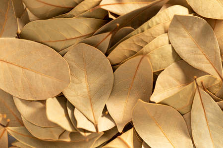 Dry leaves bay leaf background. Top view.