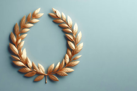 A golden laurel wreath on a clean background. Space for text