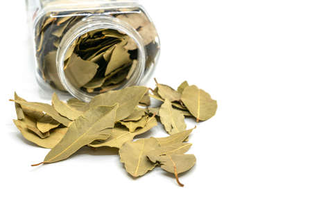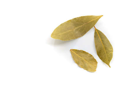 Aromatic bay leaves isolated on white background. The Bay leaf is an aromatic leaf commonly used in cooking. It can be used whole, or as dried and ground.