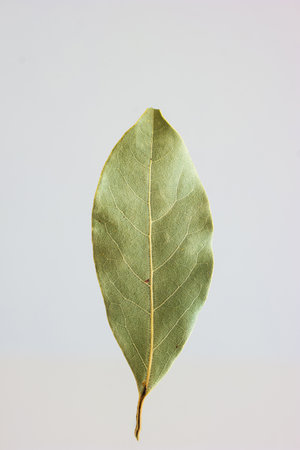 Bay leaf isolated on white surface. Close up studio shot, no people.