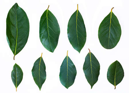A set of green bay leaves. Isolated on a white background