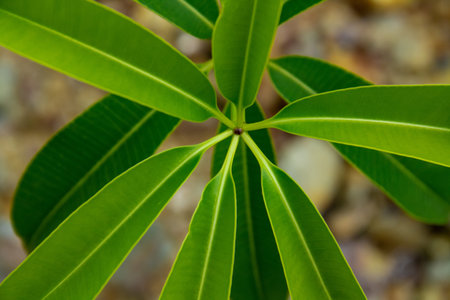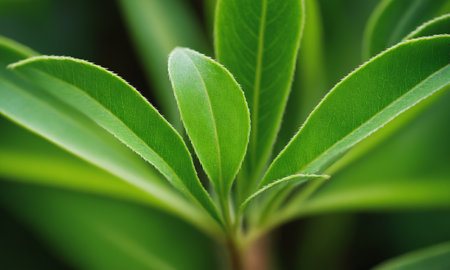 Selectively Focused Image of the outward Growth of long Oval shaped leaves, Moody green, Abstract