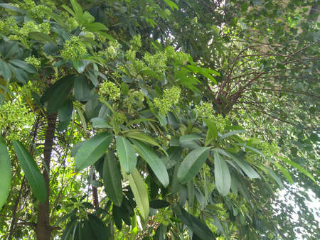 Dimocarpus longan flower (also called longan, Lengkeng, kelengkeng, mata kucing, longan, Dimocarpus longan) leaves on the nature