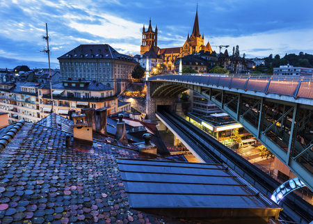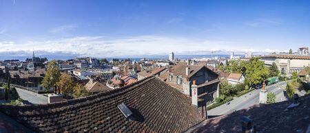 LAUSANNE, SWITZERLAND - SEPTEMBER 24, 2018: Panoramic view at Lausanne, Switzerland. Lausanne is a city on Lake Geneva, in the French-speaking canton Vaud