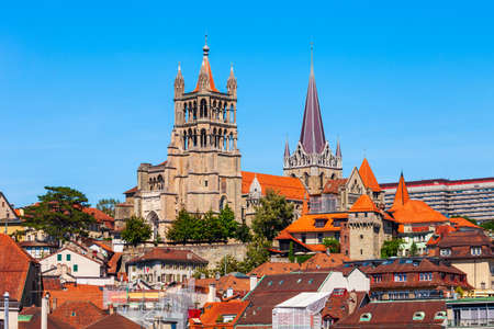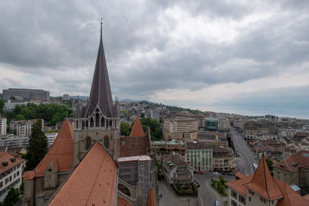 Landmark Switzerland. Lausanne. View of the Gothic cathedral