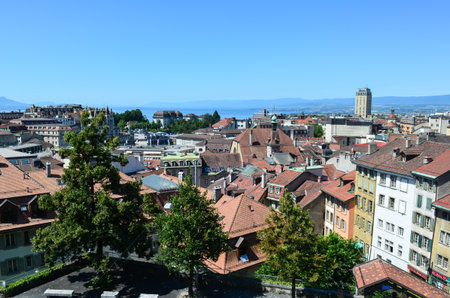LAUSANNE, SWITZERLAND - JUNE 18, 2023: Panorama of old town of city of Lausanne, Canton of Vaud, Switzerland