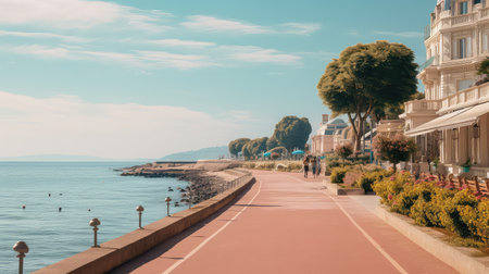 The sound of waves crashing against the shore accompanies the gentle hum of cars passing by on the lakeside road creating a peaceful symphony