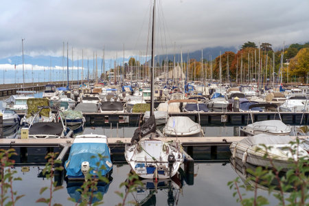 Yachts in a harbor in Tholon on Lake Geneva in France