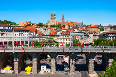 LAUSANNE, SWITZERLAND, JULY 19, 2017: View of the Grand Pont in Lausanne, Switzerland