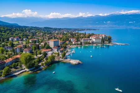 Captivating Aerial Glimpses: Exquisite Evian (Evian-Les-Bains) in Haute-Savoie, France