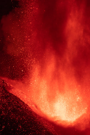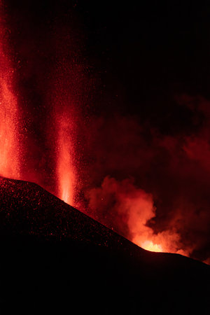 Volcanic eruption. Cumbre Vieja Natural Park. La Palma. Canary Islands. Spain.